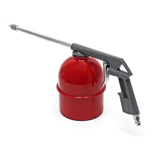 Het spuitpistool met hopper is de ideale hulpmiddel om stoffen zoals spuitolie, reinigingsmiddelen of roestpreventief te verdelen en aan te brengen. Het lange mondstuk maakt een gelijkmatige toepassing mogelijk zonder de bijbehorende vloeistoffen te verspillen.