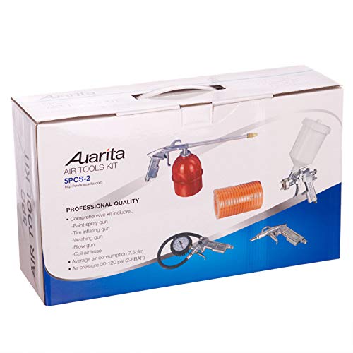 Inclusief high-performance zwaartekrachttoevoerpistool met 600ml kopje, bandenopblaasmachine met gauge, paraffine/wasmiddelspuitpistool, luchtblaaspistool en opgerolde luchtslang.