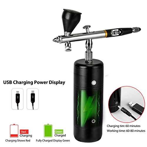 Snel opladen via USB: het draagbare Air Brush accessoire heeft een ingebouwde oplaadbare 750 mAh batterij, die met een USB-kabel kan worden opgeladen. Hij kan binnen 60 minuten volledig worden opgeladen en hij kan continu 25-60 minuten werken nadat hij volledig is opgeladen.