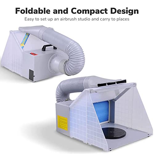 Airbrush spuitcabine kit, draagbare verfcabine, met draaitafel Krachtige ventilator 3-zijdige verlichting, opvouwbaar en gemakkelijk mee te nemen, voor model, knutselen, nagels, taart, T-shirt