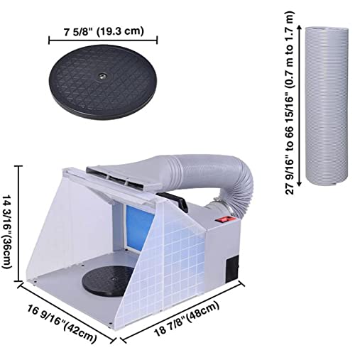 【Met hulpgereedschap】: het is geschikt voor toepassing bij het maken van modellen. Veelzijdige, inklapbare spuitcabine met draaiplateau, ventilatieslang en filter. Werkt in de hele winkelruimte omdat het systeem spatwater filtert en schadelijke lucht uit deuren of ramen afvoert.