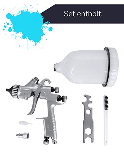 Vanwege het gebruik van roestvrije materialen en het ultramoderne mondstuk en de luchtkap is dit pistool ook geschikt voor moderne waterlakken.