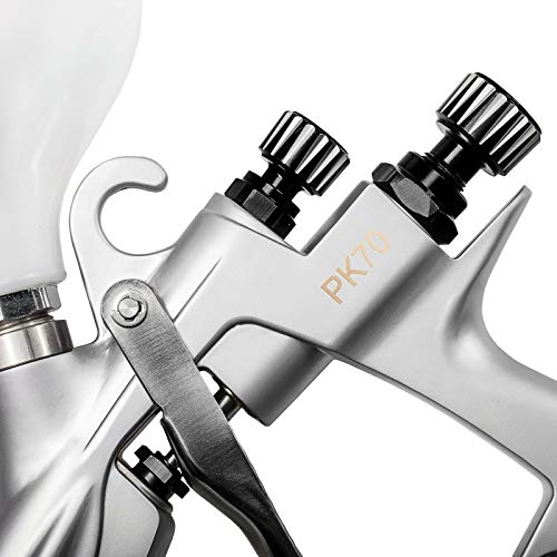 Het ontwerp is ultramodern en elke werkdag is een lust voor het oog en zal ook uw klanten inspireren. Instelbare vloeistof-, patroon- en luchtregelaar voor de beste prestaties. Ontworpen om een gelijkmatige verstuiving en deeltjesgrootte voor alle soorten oppervlaktelak te garanderen.