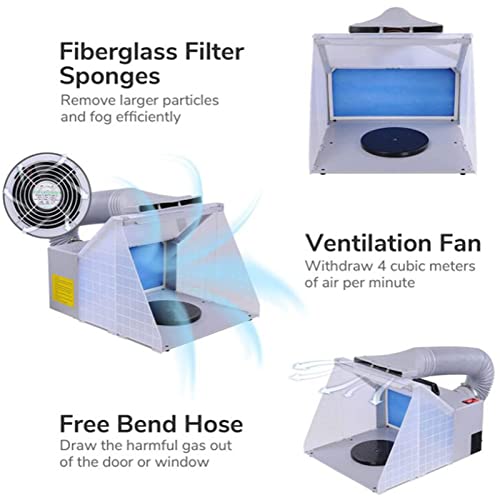 【Met hulpgereedschap】: het is geschikt voor toepassing bij het maken van modellen. Veelzijdige, inklapbare spuitcabine met draaiplateau, ventilatieslang en filter. Werkt in de hele winkelruimte omdat het systeem spatwater filtert en schadelijke lucht uit deuren of ramen afvoert.