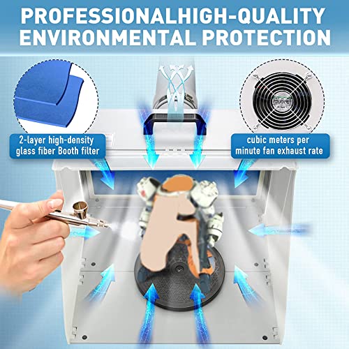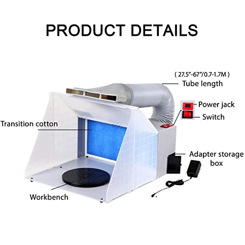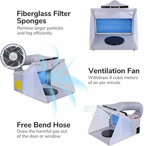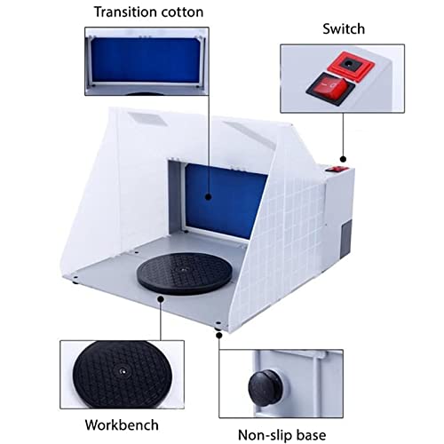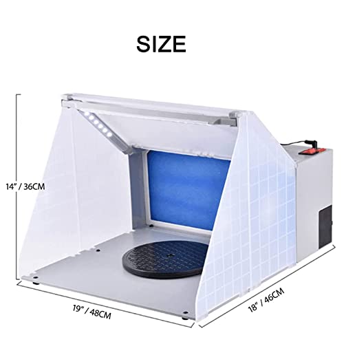Specification: Draagbare Airbrush Verfspuitcabine Kit, Verfcabine met 3 LED-verlichting Draaitafel en Filterslang, Spuitcabine Kit voor Model Cake Craft Nail Toy T-shirts