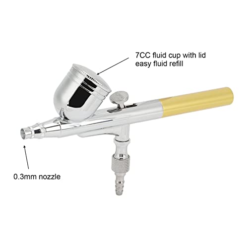 0,3 mm mondstuk: het airbrush-verfspuitpistool heeft een mondstuk van 0,3 mm, met een 7CC-vloeistofbeker met deksel