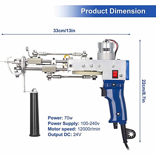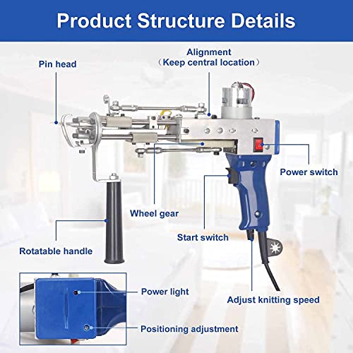 Het elektrische tuftpistool gebruikt een spanning van 100V-240V. De verticale handgreep is 360° draaibaar en in verschillende houdingen te gebruiken. Het kan worden gebruikt om tuftpatronen van verschillende dichtheden te maken door de breisnelheid van de tuftmachine aan te passen. Het is voor doe-het-zelftapijtproductie en als cadeau, de beste keuze voor handgemaakte liefhebbers.