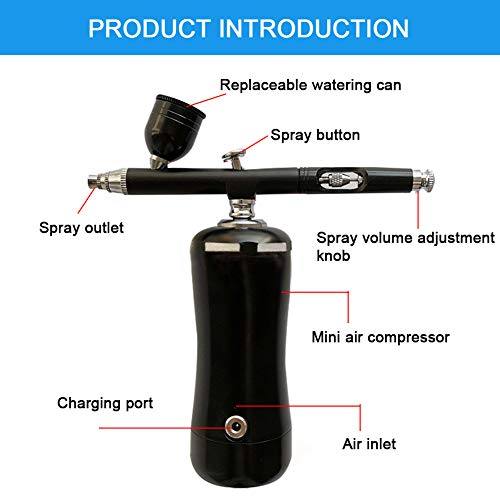 De draagbare airbrush-set is eenvoudig te bedienen en met een verbazingwekkend sproeivermogen, ideaal voor make-up, tijdelijke tatoeages, nagelkunst, gezichtsschilderwerk, bodyverf, modelleerverf, taartdecoratie, handwerk, autolak, meubelreparatie en huidverzorging.
