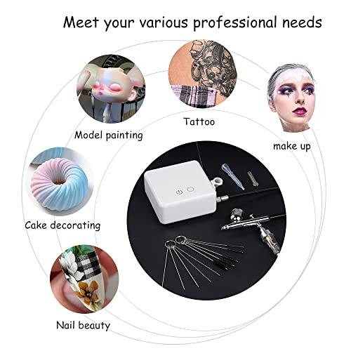 🎨 Draagbaar, eenvoudig te installeren en te gebruiken: zowel beginners als professionals kunnen met deze airbrush-kit snel aan de slag. Het kan worden gebruikt voor make-up, nagelschoonheidssproeien, modelschilderen, kunstcreatie, taartdecoratie, kunstcreatie, illustraties, T-shirts, autokunst, modelschilderen en nog veel meer.
