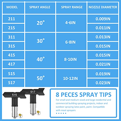 [Overzichtelijke combinatie] Het pakket bevat 8 verschillende modellen van Airless Sprayer -accessoires, namelijk 211, 215, 311, 315, 415, 417, 515, 517, verschillende modelcombinaties kunnen beter voldoen aan uw verschillende behoeften.