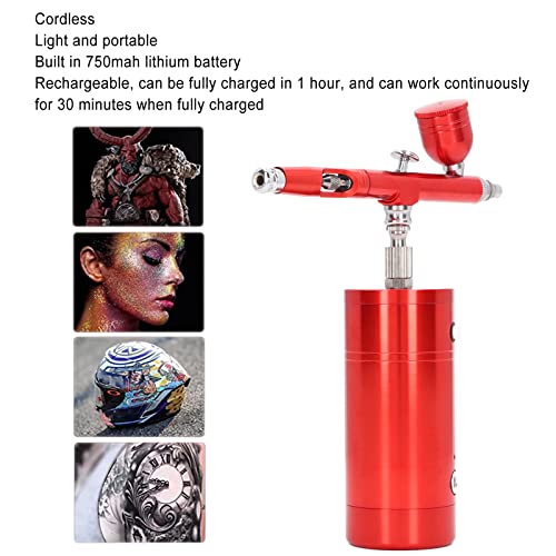 Draagbaar opladen: deze praktische draadloze mini-airbrush is licht en draagbaar, ingebouwde 750 mah lithiumbatterij, oplaadbaar, kan volledig worden opgeladen in 1 uur en kan continu werken gedurende 30 minuten wanneer deze volledig is opgeladen