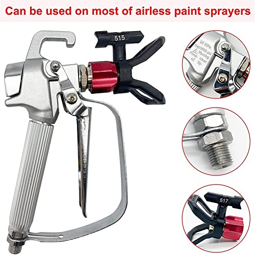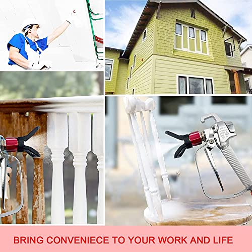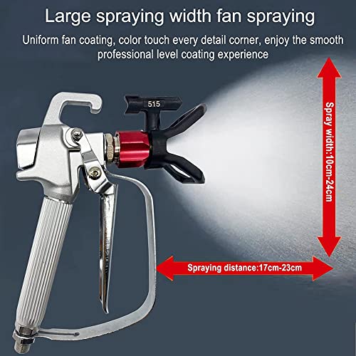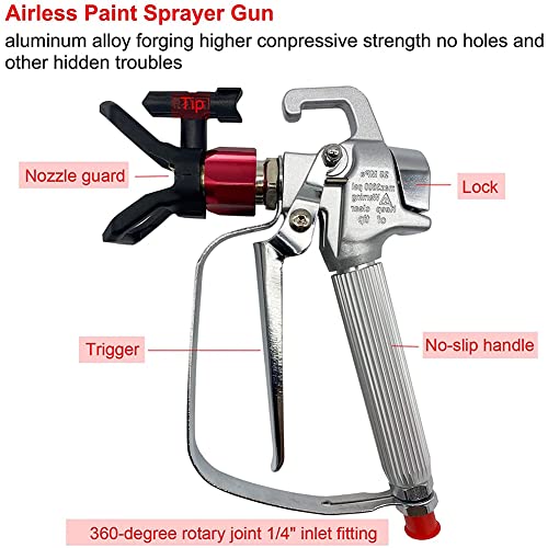 Het Airless verfspuitpistool is gemaakt van hoogwaardig metaal, roestbestendig, robuust en duurzaam, 3-delige omkeerbare punt (211, 415, 515), 100 mesh-pistoolfilter aan de binnenkant (wordt geleverd met 6 extra onderdelen) met uitstekende sproeiprestaties.