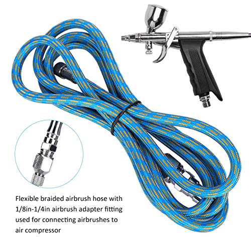 3. Flexibele gevlochten airbrushslang met 1/8in ‑ 1/4in airbrushadapterfitting voor het aansluiten van airbrushes op luchtcompressor.