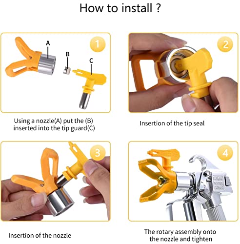 【Krachtige compatibiliteit】Sproeikop van wolfraam met 4 modellen, die compatibel zijn met de meeste airless-spuitapparaten en afhankelijk van de openingsgrootte kunnen variëren. Elk model wordt geleverd met een airless-spuitmond en een mondafdichting en is compatibel met de meeste airless-spuitapparaten.